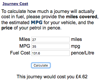Then if we feed that information, plus the distance to Gatwick, into a fuel calculator, we can get the price of our journey as well.