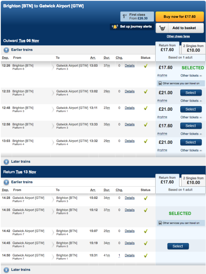 Cost of a Train to Gatwick