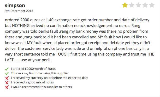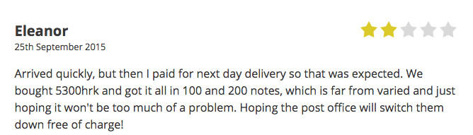 However, do a bit of scrolling and you’ll see a couple of one- and two-star reviews. One from Simpson — who says he never received his money — and one from Eleanor, who got everything quickly but it was all in 100 and 200 Croatian Kuna (about £12 and £24 respectively).