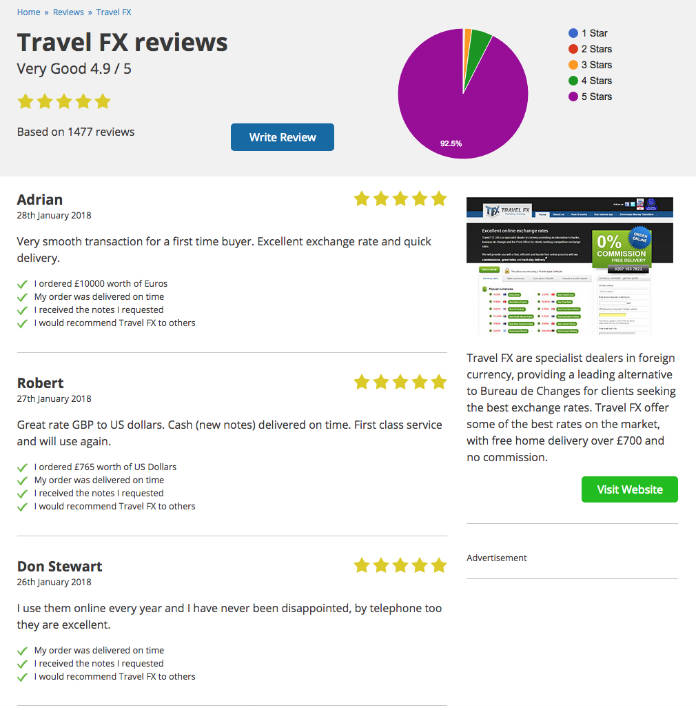 Their review section is almost completely five-star reviews across the board. Although I wouldn’t be too concerned about the negative reviews for Currency Exchange Corporation, I’d willing to sacrifice $3.50 for that extra peace of mind.